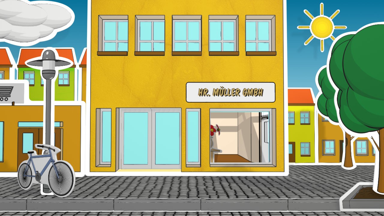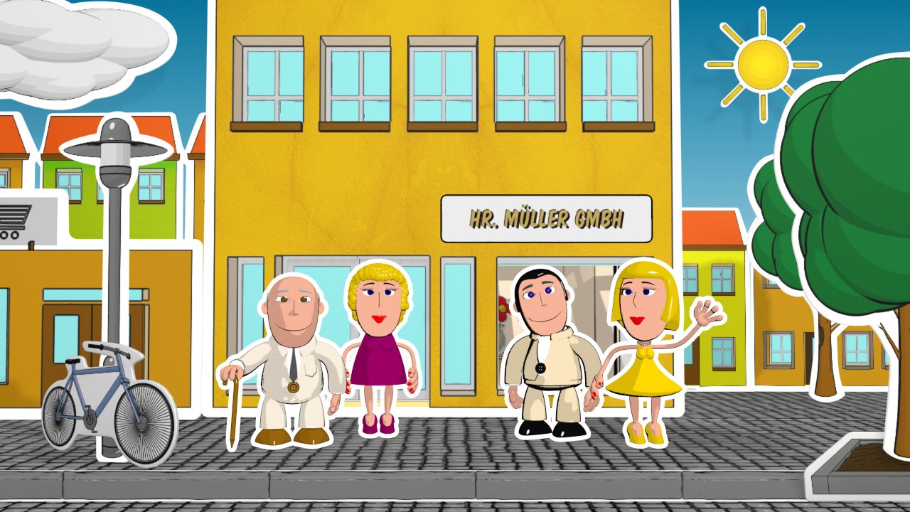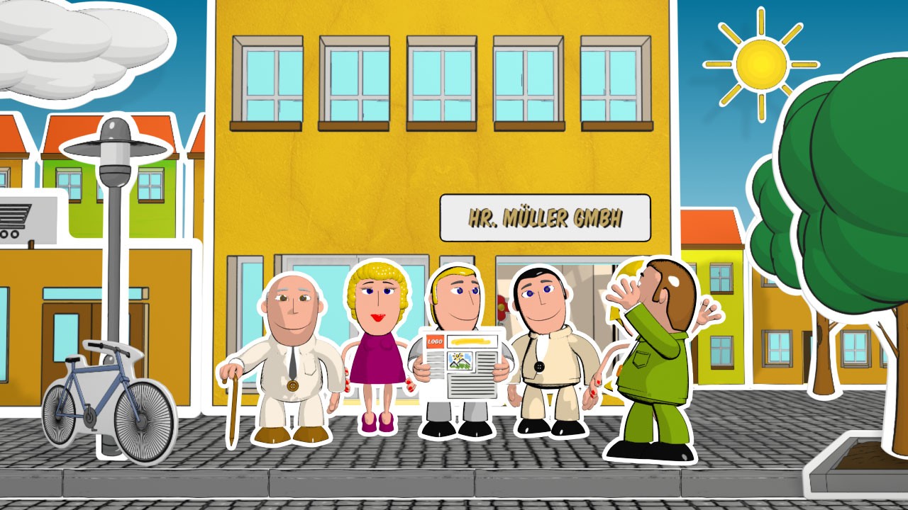 Zusätzlich konzipierten wir die Bildsprache so, dass sie höchste Flexibilität bei unterschiedlichsten Bildschirmgrößen bietet. Gemeinsam mit der Auftraggeberin entstand hierfür ein Cartoon-Stil, der sich optimal an verschiedene Display-Formate anpasst. Der Film war daher nicht nur webbasiert einsetzbar, sondern ebenso auf 80-Zoll-Displays, Smartphones oder Tablets.